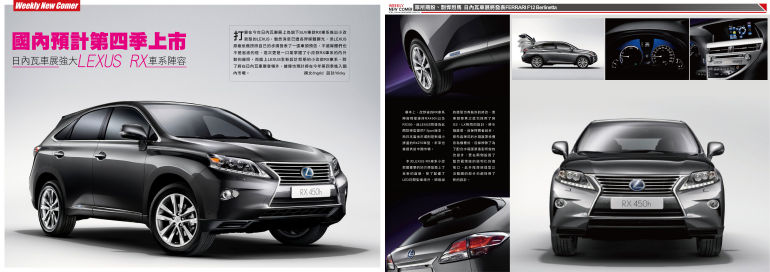 打算在今年日內瓦車展上為旗下SUV車款RX車系推出小改款型的LEXUS,雖然消息已遭各界媒體曝光,但LEXUS原廠依舊按照自己的步調發表了一張車頭預告,不過媒體們也不是省油的燈,這次更是一口氣掌握了小改款RX車系的內外裝的廠照。而換上LEXUS全新設計哲學的小改款RX車系,除了將在日內瓦車展登場外,據傳也預計將在今年第四季進入國內市.....
