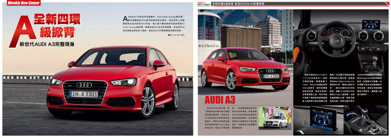AUDI在2011年的日內瓦車展中,以A3 Sedan Concept概念車、首先揭露新世代A3四門房車的初步概念,而在同年上海車展則再次結合新世代A3外型,導入旗下最新綠能科技而發表A3 e-tron Concept概念車。時間來到2012年日內瓦車展,全新世代A3終於首度出現在世人面前,並率先以三門掀背車型與車迷見面。.....