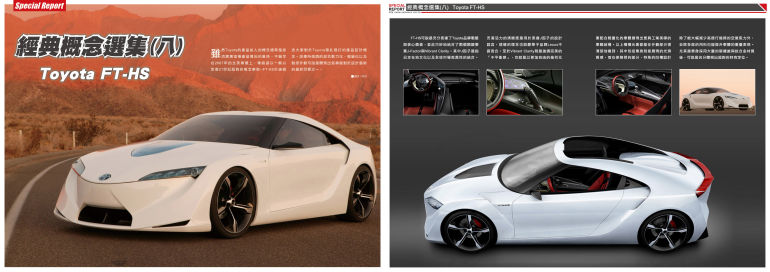 雖然Toyota的產品給人的概念通常是經濟實惠這種產品導向的風格,不過早在2007年的北美車展上,車廠卻以一輛以定義21世紀超跑的概念車款--FT-HS打破過去大家對於Toyota穩扎穩打的產品設計概念。該車所強調的混合動力化、輕量化以及動感外觀可說是體現出各車廠對於設計藝術的最終目標之一。.....