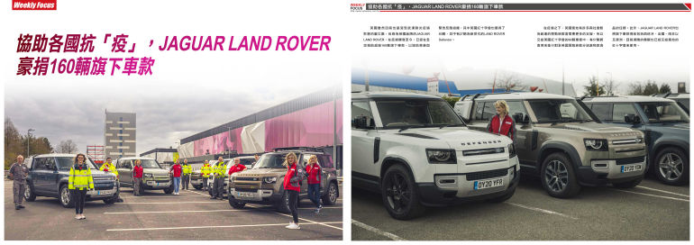協助各國抗「疫」,JAGUAR LAND ROVER豪捐160輛旗下車款