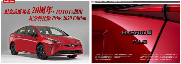 TOYOTA的Hybrid油電複合動力車款Prius,無疑是近代全球銷售最成功的新源車款之一,2001年導入美國市場,揚名立萬,狂銷熱賣,也掀起全球油電車流行風潮,今年正是Prius前進美國市場20周年,原廠特別推出20周年紀念特仕版Prius 2020 Edition,一共生產2020台。.....